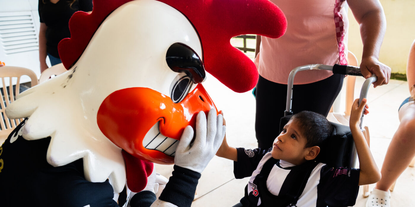 Os pequeninos da Creche do Lions também fizeram a festa com a chegada do Galo Doido. A brincadeira trouxe cliques e registros que emocionam — tudo isso publicado em nossas redes sociais. Davi, de 3 anos, foi quem mais aproveitou o momento e, de tão apaixonado, quase foi embora junto com o mascote mais querido do Brasil.