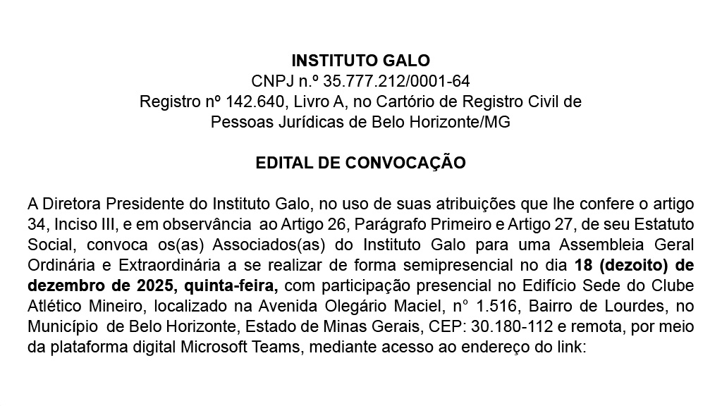 Siga o Instituto Galo nas redes sociais: @institutogalo