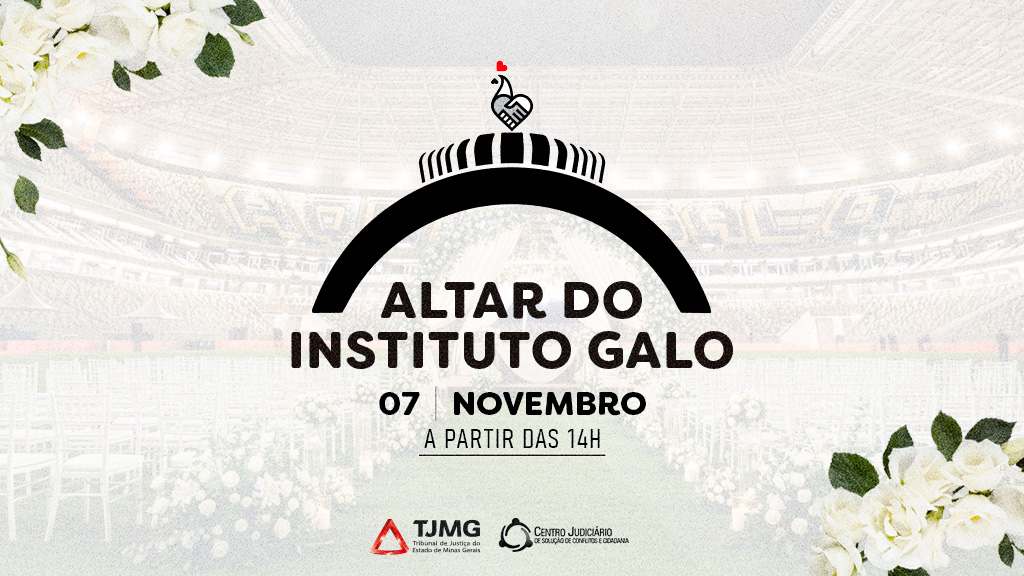 De forma pioneira no estado de Minas Gerais, o Instituto Galo promoverá um casamento coletivo: o Altar do Instituto Galo. Com o apoio do Centro Judiciário de Solução de Conflitos e Cidadania de Belo Horizonte (CEJUSC), casais formados por pessoas maiores e capazes, residentes em Belo Horizonte, que mantenham união estável e desejam converter esta união em casamento, poderão se inscrever. O cadastro – feito de forma gratuita e limitado, vai até o próximo dia 10 de outubro.